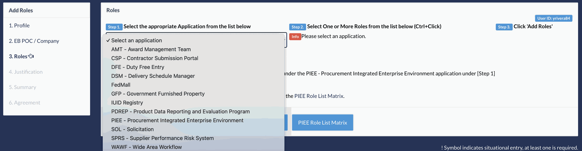 - Log in to PIEE and go to My Account → Roles → Add Additional Roles.